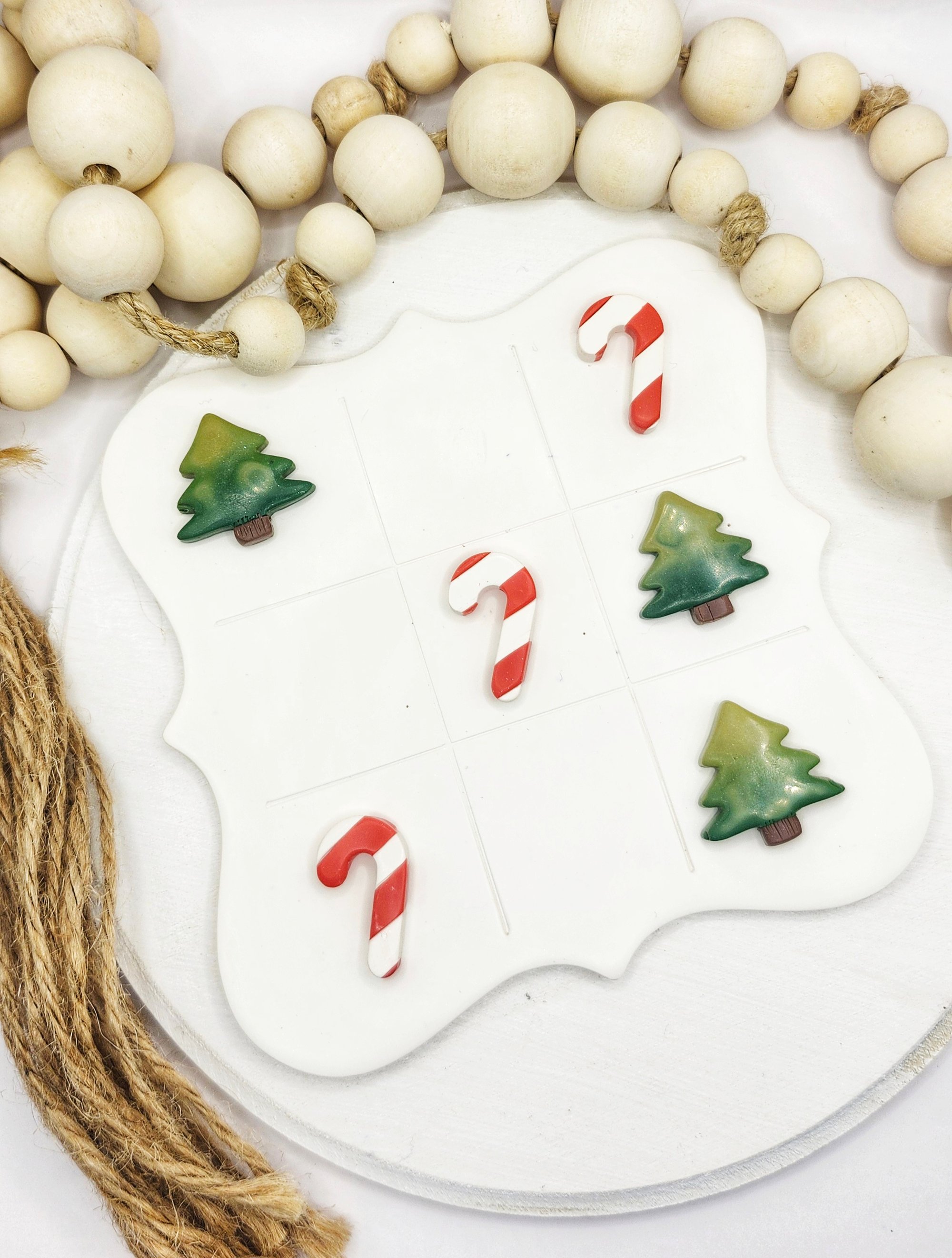 This tic-tac-toe game is completely handmade using polymer clay. You can choose between Christmas trees, gingerbread cookies, or candy canes.